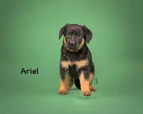 The Disney puppies and their phenomenal mother, Marley, have been living with one of our amazing foster families. Surrounded by loving and caring people, each member of the family has had all that they needed and more. These babies have had endless opportunities to learn, grow, and explore. This socialization is essential to their success. As the Disney puppies move forward, their families will need to continue to socialize them with varied people, animals, and in different environments. This will help all of the babies develop into stable and confident adults. Although they are being raised together, each of these babies has unique qualities. Ariel, just like her Disney moniker, is spirited, curious, and trying to find her independence. Ariel is always up for a good adventure. Although Ariel is cute as a button, please remember that puppies are a lot of work. They will whine, chew, have accidents, and fill your household with endless puppy antics. With time, training, patience and routine, we know that Ariel will develop into a good canine citizen. If your household is ready to welcome this little love into your home, please ask to meet her today!