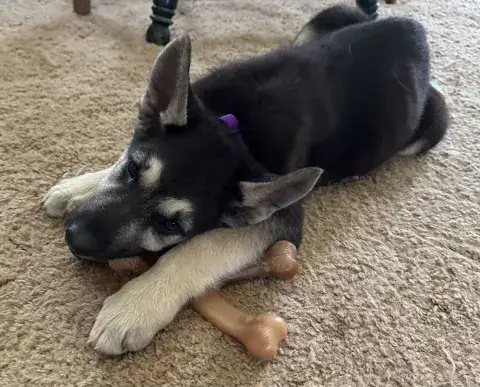 Working collaboratively with ASR, we were able to ensure that all of the puppies within the 100 Acre Woods litter had a rescue option and loving foster home ready for their arrival. These babies are in many ways your typical GSD puppies. They are playful, interactive, full of energy and puppy snuggles. Although they had a rough start, the puppies are incredibly resilient and are ready for forever families that will cherish them for a lifetime. Although Eeyore is cute as can be, please remember that puppies are a lot of work. They will whine, chew, have accidents, and fill your home with endless puppy antics. With time, training, patience, and structure, we know the 100 Acre Puppies are destined to be incredible adult dogs. If your family is ready for endless hours of puppy joy, please ask to meet Eeyore today!
