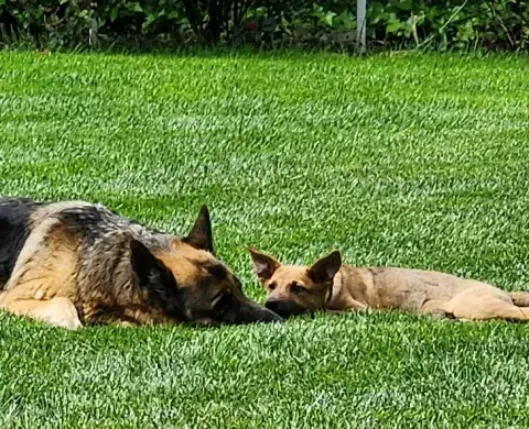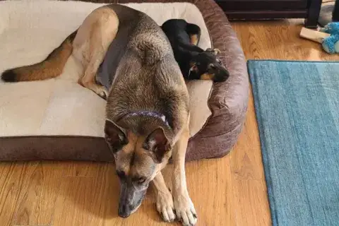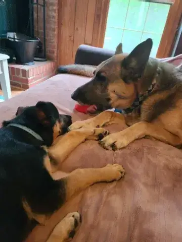 Sampson is an independent momma's boy. Once you are part of Sampson's family, he loves hard. This is especially true with his foster mom. Bonding quickly to his people, Sampson, like most GSDs, has energy and likes to be active as long as he people are not far behind. As a brave guy, Sampson is always up for a new challenge and loves learning new things. A huge fan of treats, this guy is motivated easily and picks up new skills easily. Confident in many situations, Sampson likes to lead and is the pack leader when it comes to his furry friends. As is true with all shepherds, it is critical that Sampson's forever family continue to socialize him in new people, animals, and in varied environments. These skills will help him develop into a stable adult shepherd. In addition, it is imperative that Sampson attend training. Not only will training help Sampson build a strong and healthy bond with his forever family, it will also help him develop the skills needed to become a good canine citizen. If Sampson's adventurous spirit and outgoing personality sounds like the right match for your family, ask to meet him today!