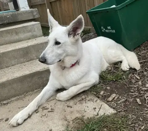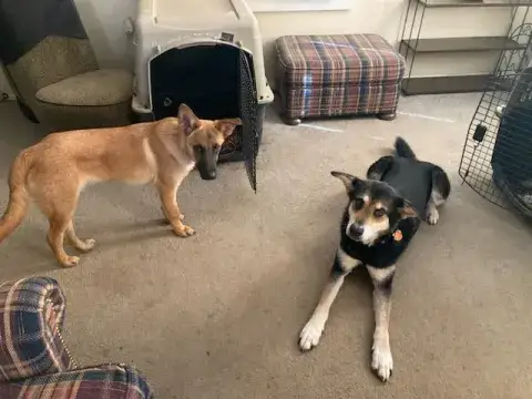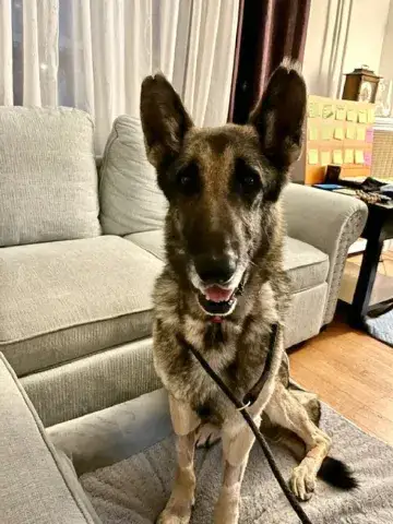 Wicker and his brother, Oakley, were living with a family that was not interested in continuing to care for the boys. Although socialized with kids, cats, and other dogs, these guys were not receiving the care they needed to move forward. Fortunately, another group heard that the boys needed help, and they stepped forward to get them out of a rough situation. Recognizing that shepherds are most successful when placed with a breed specific rescue, this rescue reached out to MAGSR to see if we could welcome the boys to the family. With an incredible team of volunteers working together between both rescues, we were able to welcome Wicker and Oakley to the MAGSR family.