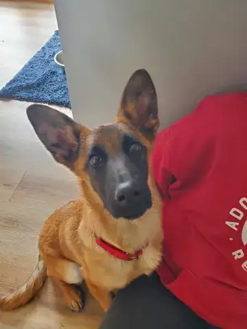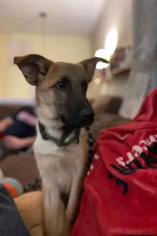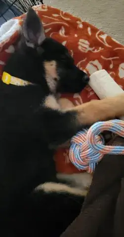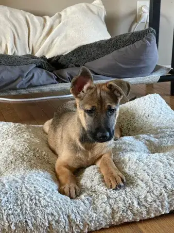 Silvo is the gentlest puppy in the litter. His sweet and affectionate nature easily wins over the hearts of everyone around him. A cuddle bug at heart, Silvo would rather snuggle in with his people than explore. When given the opportunity to try new things, Silvo does best when given some reassurance and praise. With positive support behind him, this handsome guy is learning the ins and outs of life with his foster family. Clearly a smart guy, Silvo is already moving forward with leash manners and housebreaking. His foster can't wait to see him continue to try new experiences and pick up new skills. As is true with all shepherds, it is critical that Silvo's forever family continue to socialize him in new people, animals, and in varied environments. It is also essential that Silvo attend training. Not only will training help Silvo build a strong and healthy bond with his forever family, it will also help him develop the skills needed to become a stable and confident canine citizen. If this sweetheart sounds like the right match for your family, ask to meet Silvo today!