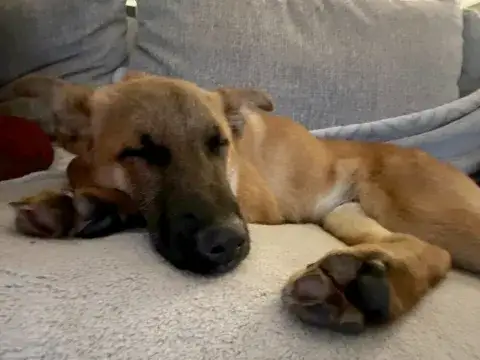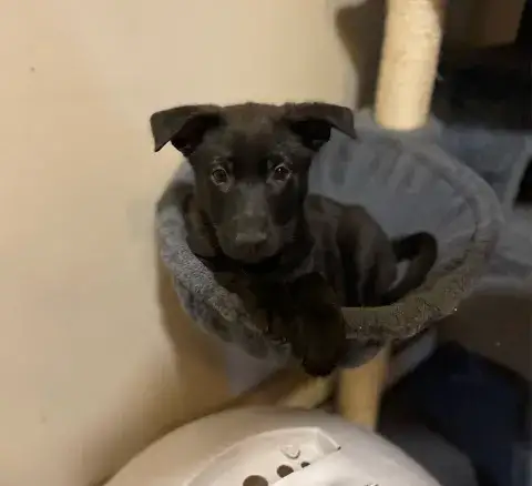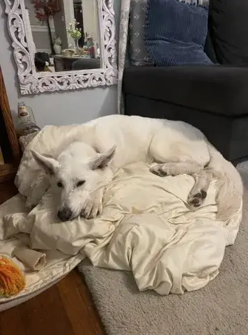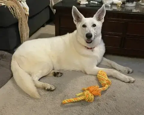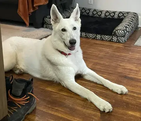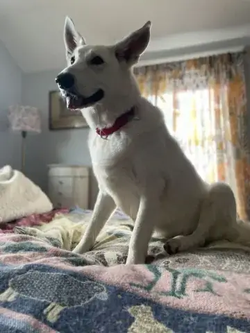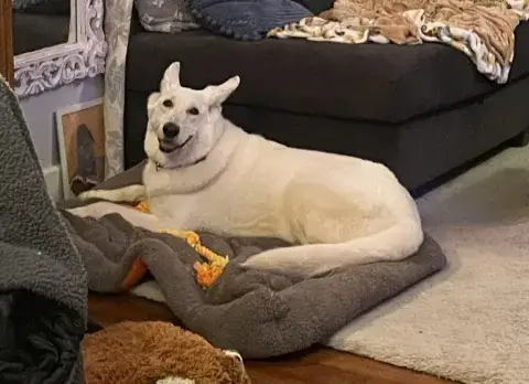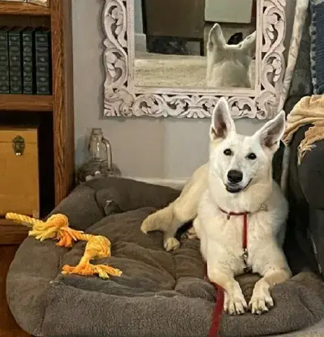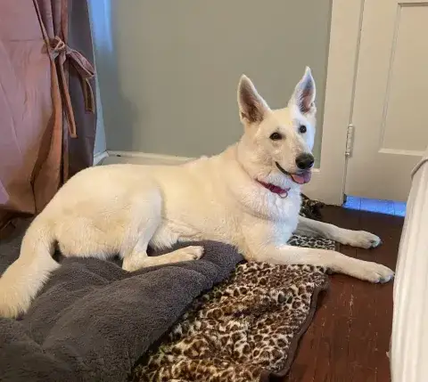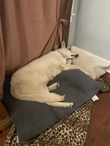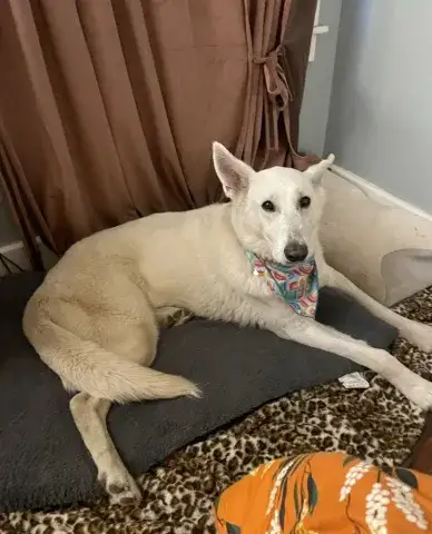 Jetta is very affectionate and loves to snuggle but is also very good at laying on her own and minding her business while her humans go about their activities. She loves to play tug, fetch and loves to run around so she can stretch her legs.