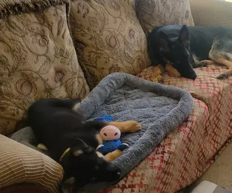 The fashion puppies - Louis V, Prada, Dior, and Chanel - are ready to find their forever families. These babies are social, interactive, and energetic. They are the perfect mix of fun. Chanel is dainty but curious about the world. She can be a little reserved in new situations and will be looking for a calm and confident leader. Having lived in an amazing foster home, these babies have begun learning the ins and outs of living in a household. They, like all GSDs, crave structure, leadership, and consistency. Their foster family has worked hard to put this set-up into place. However, it is very important that their forever family continue this process. It is also essential that their forever family continue to provide these babies with socialization in varied environments with varied people and animals. This will help them meet with success.