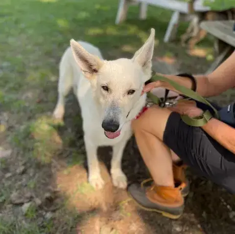 Brandi is a lovely girl. She arrived with wounds on her shoulders and underweight. Her foster family worked hard to get Brandi healed and healthy. Although we do not know anything about Brandi's past, it does appear that she was mishandled at some point. As a result, she can be timid and fearful with new people, particularly with men. A slow approach and some tasty treats go a long way with Brandi. She does warm up with a calm, confident, and patient handler. Brandi is looking for a forever family that will give her the opportunity to slowly adjust to the household. Providing Brandi with clear structure, routine, and guidance will be key to her success. When ready, Brandi will benefit greatly from training. Training will help Brandi build a strong, healthy bond with her forever family; it will also help her develop the stability and confidence needed to navigate her world. While living with her foster family in the south, Brandi did begin to develop her socialization skills. She also has learned the joys of living in a safe and loving home. At this time Brandi is housebroken and crate trained. However, she will likely need to fine tune her skills once she finds her forever home.