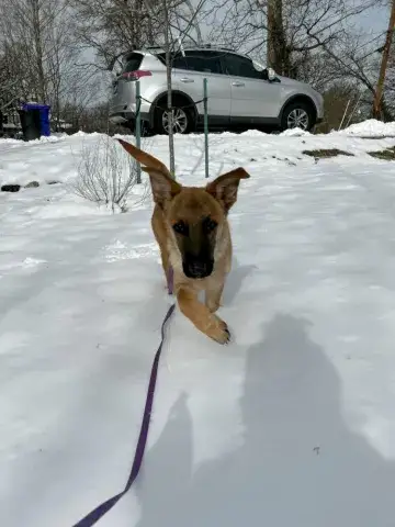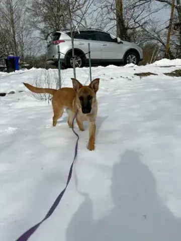 Jetta is an amazing puppy who already knows many commands and is very respectful of other dogs (large and small). Jetta knows how to sit, down, no, come, leave it and her name. She walks well on leash, but may pull at times when she gets excited. She is not food aggressive, and will leave it if other dogs should get the food/treat. She is extremely bright and is very quick and eager to learn new things. She has potential to be a great sporting dog based on her being very fast and her ability to learn quickly.