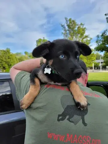 Bright eyed Amari was given as an unexpected and unwanted gift to a child. Although she was cute as a button, the child's caregiver recognized that puppies require a lot of love, attention, and guidance to become stable, adult dogs. Knowing that this was not something they could do, they began looking for a rescue option for Amari. Fortunately, a rescue network began working together to try to find Amari placement. When MAGSR learned that Amari needed placement, our team immediately stepped forward to help.