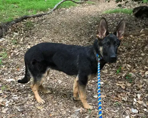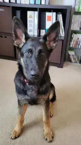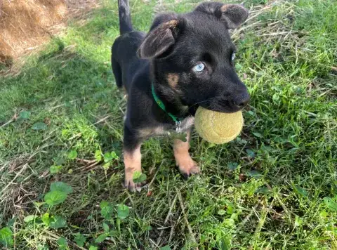 We would like to introduce Sage; a stunningly beautiful, bouncy, 7 month old sable. Unfortunately, her previous family was unaware of the requirements of a GSD puppy, and made a difficult decision to surrender her so she could live her best life. With that being said, Sage wasn’t properly socialized with other dogs or humans, and as a result, is terrified of most things. In order to help give her the best chance, Sage will be receiving some training to help her rebuild her confidence.