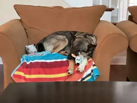 As we get to know Sage, it is clear she will need time to decompress and onboard some training that will help build her confidence. We know she will end up being an incredible, loyal and loving companion, but will need to be placed with a person or family that is either familiar with German Shepherds or is eager to learn about the temperament of the breed while providing the essentials - training, structure, boundaries, routines, and continued guidance.