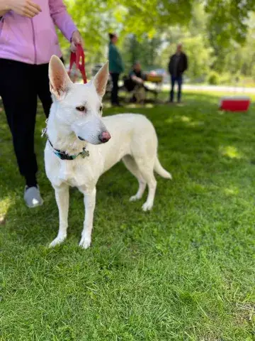 Jameson is a social, interactive, and energetic guy. He clearly enjoys the attention of his people and has done well with other dogs. Although Jameson has been socialized with other dogs and some people, he has not had much experience in new situations and environments. Socialization is a critical component when raising a stable and confident dog. Jameson is living with a loving foster family that is beginning this process. However, his forever family will need to continue to provide him with opportunities to meet new people and dogs in varied environments. Having lived his entire life outdoors, Jameson is just starting to learn the joys of living in a household. As an intelligent guy, we are sure he will pick up new skills quickly. With structure, routine, and leadership, Jameson will thrive.