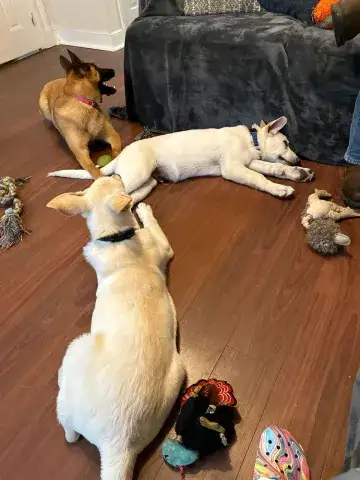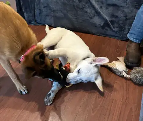 JD is a social, playful, and energetic guy. He clearly enjoys the attention of his people and other dogs. Although JD has been socialized with other dogs and some people, he has not had much experience in new situations and environments. Socialization is a critical component when raising a stable and confident dog. JD is living with a loving foster family that is beginning this process. However, his forever family will need to continue to provide him with opportunities to meet new people and dogs in varied environments. Having lived his entire life outdoors, JD is just starting to learn the joys of living in a household. As an intelligent guy, we are sure he will pick up new skills quickly. With structure, routine, and leadership, JD will thrive.