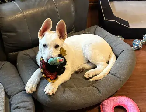 Zaire is an interactive, playful, and social girl. She is learning all about the joys of a comfortable bed, good food, and plenty of toys. Her incredible foster family has begun the important work of teaching Zaire the ins and outs of living in a household. She is a smart little girl and is already beginning to pick up new skills. As Zaire is still very young, her foster family is working hard to support Zaire providing her with opportunities to socialize with people and animals in varied environments. Socialization is critical to Zaire's success. Her forever family will need to continue this process to ensure that Zaire develops into a confident and stable adult dog. Training will also be essential to Zaire's success. Not only will training help Zaire develop a strong and healthy bond with her forever family, but it will also help her develop into a good canine citizen.