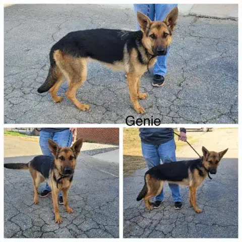 Genie is a young, energetic, intelligent girl. She is looking for an active household that will provide her with the clear structure and routine that all shepherds need. Consistency and leadership are essential to developing stable and confident adult shepherds. This is particularly true in Genie's case as she will try to control the situation if she feels her handler cannot. As a result, Genie will be most successful in a household with a calm, confident, and experienced handler. Coming from a situation with little opportunity for affection or interaction with the world around her, Genie is learning about the smells, sounds, and sites around her. She can be a little timid at first; however, patience and confidence go a long way with her. As is true of all young dogs, Genie will need daily exercise for both her mind and her body. This will help her develop the ability to handle new people and situations in a calm and composed manner, as well as help her develop a healthy mindset. Continued socialization is also critical for Genie as she has spent her first year with limited interactions. Providing Genie with opportunities to interact with other people and other animals in a controlled manner will help her develop essential skills that could not be established while chained up. Training will be an essential piece of this process, as it will not only help Genie learn to develop a healthy bond with her family, but it will also help her develop the skills needed to be a good canine citizen. Fortunately, Genie has already learned many of her basic commands. Further practice will help her develop the stability needed to meet with success. With some heavier GSD specific traits, such as herding and guarding of property, Genie is a young girl who is looking for a safe and loving family. It is important that her new family understands the needs of the breed. If Genie sounds like the right match for your household, ask to meet her today.
