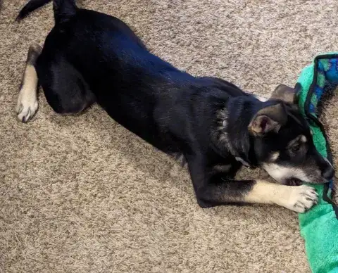 Autumn is a smart, inquisitive, and playful girl. However, having survived such a large loss in her life, she is still working on transitioning to a life without her mom. Although she is sweet and affectionate, she is also timid and needs a little time to warm up to new people and situations. When given the chance to adjust, Autumn shows off her loyal and playful personality. Living in a foster family, Autumn is continuing to socialize with new people and environments. This socialization is critical and will need to continue with her forever family. Having lived in a home, Autumn knows many of the ins and outs of a household. She is housebroken and crate trained. Like many young dogs, she is still learning what toys are hers and what items should be left alone in the household, but she is quickly learning the difference. Although she does understand many of the rules of living in the home, Autumn will need time to learn the rules and routines of her forever family. When given structure, guidance, and leadership, Autumn thrives. Training will go a long way for this special girl. Not only will training help her develop a strong and lasting bond with her family, but it will also help her develop into a good canine citizen. Autumn is looking for a forever family that is looking for a loyal and cuddly addition to their family. Could that family be you?