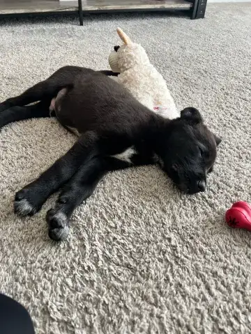As we are still learning about Our Gal Glory, she has been observed as very true to the breed: loyal, strong, eager to please, while craving guidance and structure. So far she has held her own during play-time and has been noted to play rough. Given her strength and temperament, it’s best if Glory is with larger dogs, older children and probably best suited for a family/persons who are familiar with the breed.
