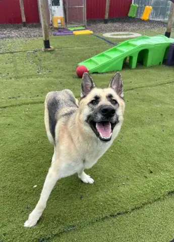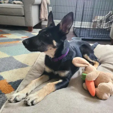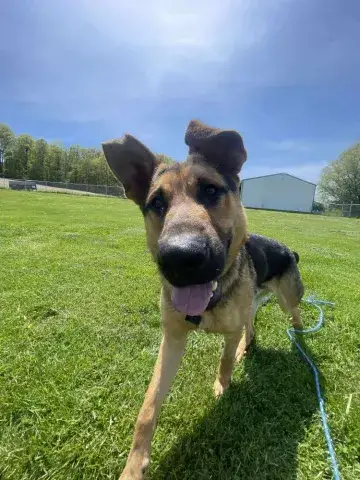 At just a year old, Bear is still discovering the world and learning how to navigate it with curiosity and heart. Like many young dogs, he’s motivated to bond, quick to learn, and ready to belong. Super-smart and hungry for mental stimulation, Bear is soaking up training opportunities and responding well to consistency and positive reinforcement as he learns what it means to be a well-mannered adult. He’s making strides with housebreaking, crate training, and basic manners. With continued structure and guidance, his potential is limitless. Like any new dog, Bear will thrive with routine, leadership, and clear expectations; this will help him adjust smoothly and build a strong bond with his forever family. As a fun, energetic young boy, Bear still has plenty of silly goofball antics and lots of love to give as he matures into his adult self. Like any shepherd, he'll also need a home that will make sure he gets mental and physical exercise on a daily basis. If you’re interested in this handsome guy, ask to meet him today.