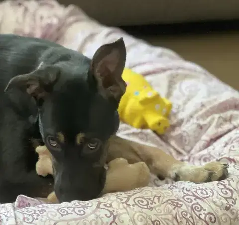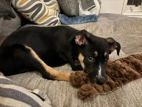 Tessa is a loving honey. Her amazing fosters have been helping her learn about the joys of being a puppy and taking in the world around her. With opportunities to go for walks in the cooler evenings, Tessa loved to play in the long grass and chase water in the creek. A big cuddler, she is friendly, young, affectionate, and resilient. She has done well with other dogs and absolutely adores children. With a high prey drive, she definitely doesn't think of cats in the same way. Super-social with people, Tessa especially loves to snuggle with her people, but does understand the concept of toys and has good energy. A bit of a goofball, she sometimes puts her whole snout into the water dish when getting a good drink. This sweet girl rides perfectly in the car and is non-reactive to other cars or animals that she passes. Like many dogs of this breed, Tessa will thrive when both her body and mind are kept active through exercise. A home with daily physical and mental stimulation would help her shine. Continuing her training and socialization will go a long way with this smart cutie. Not only will training help her develop a healthy bond with her forever family, but it will also help her build the skills needed to become a good canine citizen as an adult. Similar to any new dog, Tessa will thrive with structure, routine, leadership, and clear expectations from a calm and confident handler. This will help her adjust to the expectations of her forever family. If you're looking for a pup to snuggle up with you and make you laugh, ask to meet Tessa today.