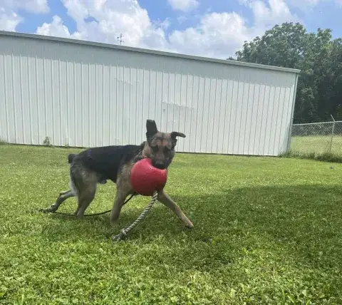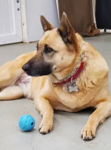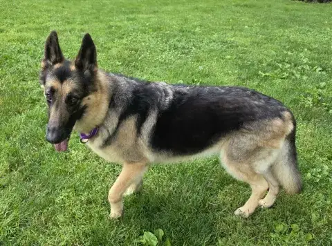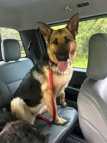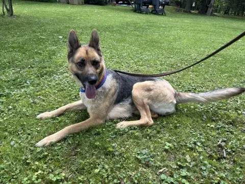 Adorable Cressida was picked up as a stray and brought to a local shelter with another young female GSD - Cordelia. The two girls waited patiently for families to come and claim them. However, after waiting for a month, when no one stepped forward, shelter staff began working with the girls to find amazing forever families. Although they began teaching the girls basic commands and even began working with a local trainer, GSDs often struggle in the shelter environment as they require a more stable, calm, and predictable environment. Recognizing that Cressida and Cordelia would be more successful within a breed-specific rescue, both girls were transferred into MAGSR's care. Our team made sure that both girls settled into loving foster homes where they would have everything they needed to meet with success.