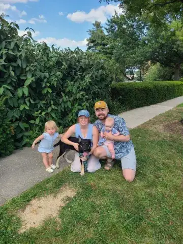 Beautiful Bells is young, active, and affectionate. It is beyond obvious that this girl loves her people and has had opportunities to interact with people of all ages. Still learning basic manners, Bells will need to learn to keep all four paws on the ground. However, with clear expectations, consistency, and training, we know that Bells will learn fast. She already knows to sit on command and walks relatively well on leash when the correct equipment is used. Curious about the world around her, Bells has a busy nose but does not pull excessively on leash. She will however need an active family that can provide her with daily opportunities to exercise. Living in a household with kids, cats, and other dogs, Bells is friendly with everyone. She is responsive to the boundaries set by the cat and is comfortable with the dogs in the home. As Bells is new to the MAGSR family, we are still learning about her household manners. At this time, she is crate training and seems to be housebroken. Time will tell on this piece. Structure, routine, and clear expectations are already in place as Bells decompresses from all of the changes in her life. Maintaining this set-up will help Bells continue to make the adjustments she needs to meet with success. Overall, this lovely girl is a go-with-the-flow kind of lady. However, after all she has been through, storms are not her thing and she does need to be kept safe and secure during rough weather.