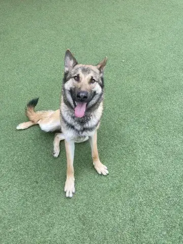 Lucas is a friendly, playful, and intelligent guy. Unsurprisingly, he does like to see what he can get away with when being handled. He has your typical GSD shenanigans going on. Although Lucas was a stray, he is interactive and affectionate. It is obvious that this guy was well socialized with people and dogs. As a young dog, Lucas will thrive with structure, clear routines, and leadership. He is beginning to learn basic manners and how to walk on leash without pulling. However, Lucas, like all dogs, will need training. Training will not only help him bond to his forever family but it will also help him develop into the good canine citizen we know he is destined to become. Lucas is looking for a family that enjoys an interactive dog, playtime, and lots, we mean lots, of belly rubs. If this boy sounds like the right match for your family, ask to meet Lucas today.