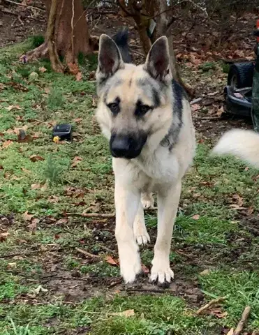 Genie is a young, energetic, intelligent girl. She is looking for an active household that will provide her with the clear structure and routine that all shepherds need. Consistency and leadership are essential to developing stable and confident adult shepherds. This is particularly true in Genie's case as she will try to control the situation if she feels her handler cannot. As a result, Genie will be most successful in a household with a calm, confident, and experienced handler. Coming from a situation with little opportunity for affection or interaction with the world around her, Genie is learning about the smells, sounds, and sites around her. She can be a little timid at first; however, patience and confidence go a long way with her. As is true of all young dogs, Genie will need daily exercise for both her mind and her body. This will help her develop the ability to handle new people and situations in a calm and composed manner, as well as help her develop a healthy mindset. Continued socialization is also critical for Genie as she has spent her first year with limited interactions. Providing Genie with opportunities to interact with other people and other animals in a controlled manner will help her develop essential skills that could not be established while chained up. Training will be an essential piece of this process, as it will not only help Genie learn to develop a healthy bond with her family, but it will also help her develop the skills needed to be a good canine citizen. Fortunately, Genie has already learned many of her basic commands. Further practice will help her develop the stability needed to meet with success. With some heavier GSD specific traits, such as herding and guarding of property, Genie is a young girl who is looking for a safe and loving family. It is important that her new family understands the needs of the breed. If Genie sounds like the right match for your household, ask to meet her today.