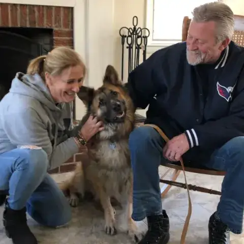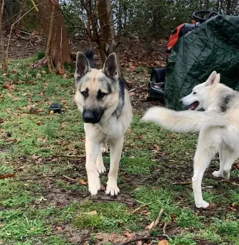 Alpha and Beta appeared outside the home of an experienced GSD family. Recognizing the boys needed a safe place to stay while their family was located, this family brought the boys in and began making calls to local vets, shelters, and lost dog groups. Although word quickly spread that Alpha and Beta had been found and were safe, no one came to bring the boys home. When their stray hold ended, this family began working with local rescues to move the boys forward so that they could be safely placed in a loving forever home. As a member of the rescue network contacted to support Alpha and Beta, MAGSR was happy to step forward and help the boys move into the rescue family.
