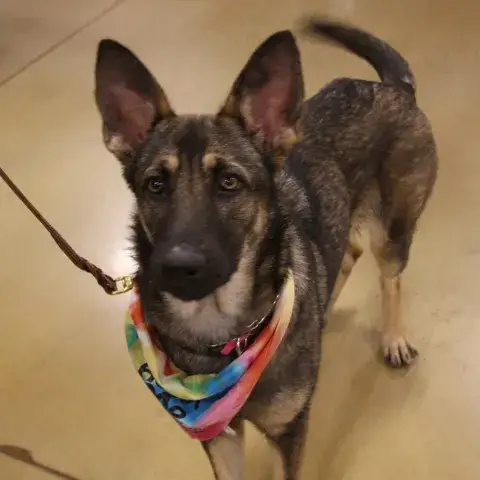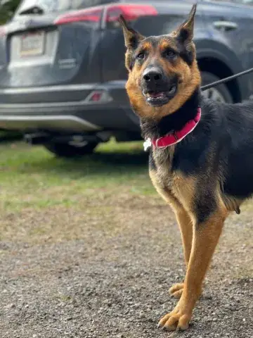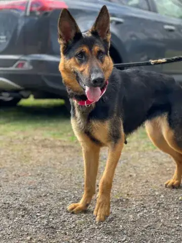 Dutchess is a loveable, playful, intelligent girl. We are so excited to help her move forward. A definite fan of other dogs, Dutchess is under the impression that all other dogs should be her furry friends. Clearly, this girl was well socialized with other animals. Although really good with other animals, Dutchess does need a small pause when meeting new people. Given a chance to adjust, she is interactive and friendly. Dutchess, like all other young shepherds, will thrive with structure, routine, and leadership. As a young dog, she will need to exercise both her body and her mind on a daily basis. Training will also be key to Dutchess' transition in her forever family. Training will not only help her form a strong and healthy bond with her family but it will also help her develop into a stable and confident adult. Dutchess is looking for an active family that will commit to her for a lifetime. Could that be with you?
