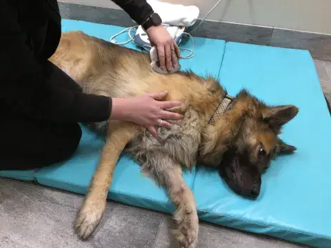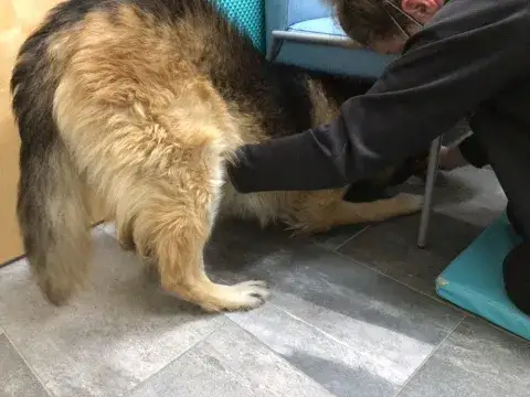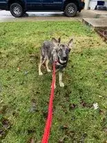 Gypsie is a young, energetic girl. She is looking for an active household that will provide her with the structure, routine, and leadership that all shepherds need. Although clearly emaciated and mishandled, Gypsie is ready to move forward. Coming from a situation with little opportunity for affection or interaction with the world around her, Gypsie is taking every opportunity to explore and enjoy life. As is true of all young dogs, Gypsie will need daily exercise for both her mind and her body. This will help her develop the ability to handle new people and situations in a calm and composed manner. Continued socialization is also critical for Gypsie as she has spent her first year with limited interactions. Providing Gypsie with opportunities to interact with other people and other animals in a controlled manner will help her develop essential skills that she has missed while chained up. Training will be an essential piece of this process, as it will not only help Gypsie learn to develop a healthy bond with her family, but it will also help her develop the skills needed to be a good canine citizen.