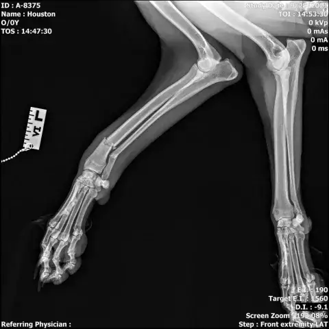 Houston is a stable, confident and friendly guy. Although we do not know what Houston's life was like prior to his arrival at the shelter, at some point he did know love. Known to shower his handlers with affection, Houston does tend to give wiggles and kisses when first meeting new people. He's simply a lovable guy. When Houston arrived at the shelter it was highly evident that something was wrong with his front right leg. He was non weight bearing as the lower portion of his leg was hanging from the carpal area. Upon closer inspection, it was determined that Houston has a right distal radial ulna fracture. This will need to be repaired by one of our surgical specialists. Unfortunately, Houston will need to wait a few weeks as he is also suffering from a rather serious upper respiratory infection. Although he is getting the additional attention and support he needs to recover, he will need time to heal before surgery.