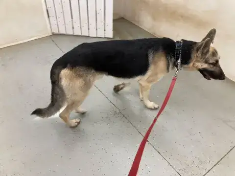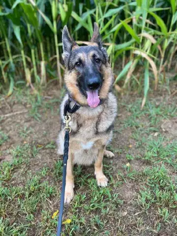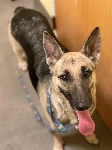 Blake is a handsome and intelligent guy. It is apparent that he lived with a family as he knows several commands. He also seems to understand how to walk on a leash. Although it seems that someone worked with Blake at some point along his journey, we do not yet know if he is housetrained or crate trained. However, we have discovered that this guy takes direction well and seems to be a confident and stable guy. As Blake moves forward, he will meet with greatest success in a household that will provide the structure, routine, and consistency that all young GSDs crave. Blake will also benefit greatly from continued training as this will help him develop a healthy bond with his forever family.