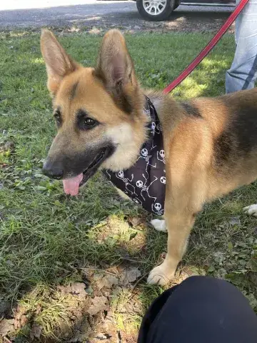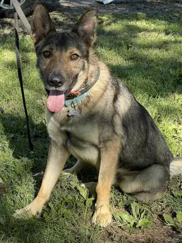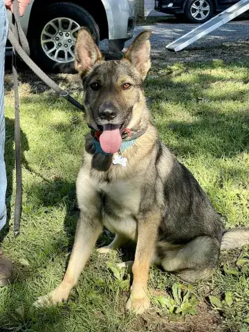 Shortcake is an absolute doll. Although she needs a little time to warm up to new people and new situations, once comfortable, Shortcake vacillates between cuddle bug and playful pup. She is an excellent balance of young dog energy. A big fan of high-value treats, Shortcake quickly makes friends when something tasty is involved. Shortcake's treat motivation will not only provide an excellent motivator for socialization with new people, but it will also help her in training. Training will go a long way with Shortcake. It will help her bond to her forever family as well as provide the foundation needed to develop into a stable and confident adult. Shortcake is looking for a loving family that will provide her with the routine and structure that all GSDs crave. If you feel that your household is the right match for Shortcake, ask to meet this little love bug today.