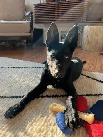 Andrew is in many ways your typical, young, energetic shepherd. He is curious about the world and is learning about the joys of toys. Although we do not know anything about Andrew's past, it is clear that he is ready to move forward with his future. As is true of all young shepherds, Andrew will be most successful in a household with structure, routine, and consistent leadership. This will not only help him adjust to his new household, but it will also help him develop an understanding of the expectations of living in a home. In addition, Andrew will benefit greatly from training; training will help him develop the skills and strategies he needs to develop into a good canine citizen.