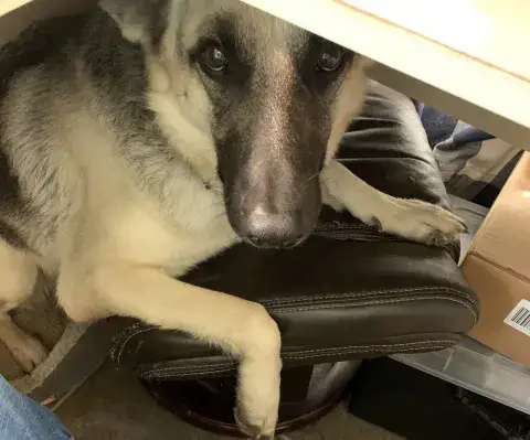 *Update* Tasha’s fosters are thrilled that this precious girl is heartworm free! She is looking for a forever home where she can enjoy company most of the day with hugs and head-to-head snuggling. She’s a low to moderate energy GSD and is gentle in all ways. While she has not shown much interest in other dogs, her fosters continue to work on her socialization skills. She enjoys walks that give her opportunities to sniff and stroll and is not affected at all by other passing dogs. Training also continues as we all work together on basic commands.