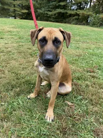 Chadwick is a big, goofy buddle of energy and playfulness. He brings smiles to everyone he meets. Friendly with both dogs and people, Chadwick can't wait to find his forever home. Although Chadwick is still very young, he seems to have begun responding to a few commands. He is well behaved in his crate and appears to be housebroken. This snuggly guy loves a good ear rub and wouldn't mind crawling into your lap for extra attention. If this goofy and affectionate guy sounds like the right match for your household, ask to meet him today!