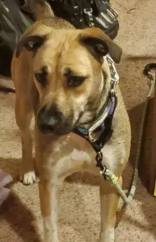 Mazie is a special girl. Her family welcomed her home after a breeder considered putting her down after being born with a congenital defect. Although Mazie required a little extra time and support, she was welcomed home to a family that taught her how to walk, play, and interact just like any other dog. Mazie is a little confused by all of the changes in her life. As a result, she needs a little extra time to warm up to new people. However, when provided with leadership and guidance, Mazie warms up to new people and leans in for affection.