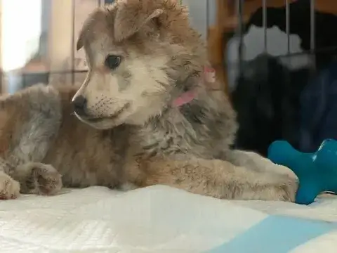 Dusty is a precious little girl. She brings joy, giggles, and smiles to her foster family on a daily basis. Although somewhat undersocialized, daily work with Dusty is helping her develop into the stable girl we know she will be as she grows. Although Dusty is an absolute love, please remember that puppies are a lot of work and require a lot of attention from their family. Puppies are full of puppy antics and can be mischievous - they will whine, have accidents, get into things, and chew on inappropriate things. With time, patience, guidance, and training, Dusty will develop into the good canine citizen we know she is destined to become. If Dusty sounds like the right match for your household, ask to meet the delightful girl today.
