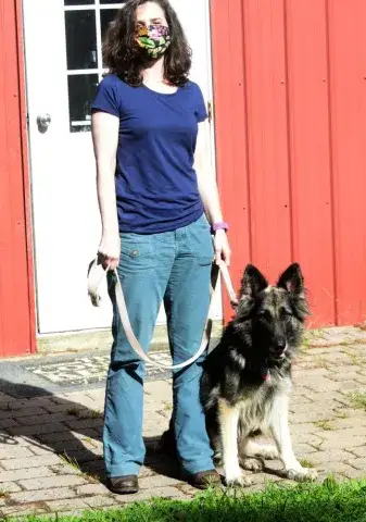 Sadie is a sweet girl who looks for guidance and leadership from those around her. When given calm and consistent leadership, Sadie responds positively. Sadie, similar to Mazie, is a little confused by all of the changes in her life. As a result, she needs a little extra time to warm up to new people and situations. However, when provided with guidance and support, Sadie warms up to new people and takes cues from the handler.