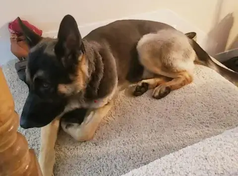 Cody was surrendered to a shelter for reasons unknown to us. According to his records it states that he lived with children, we have yet to evaluate him with children. It also states that he lived with cats and did well with them. He also lived with a female GSD. Cody has some skin issues that we are taking care of, we are unsure if it's caused by allergies or not. In his previous home they described him as being a sweet boy, but was protective of his family. Cody will be off for a full exam with our vets, we will post an update once he has been seen.