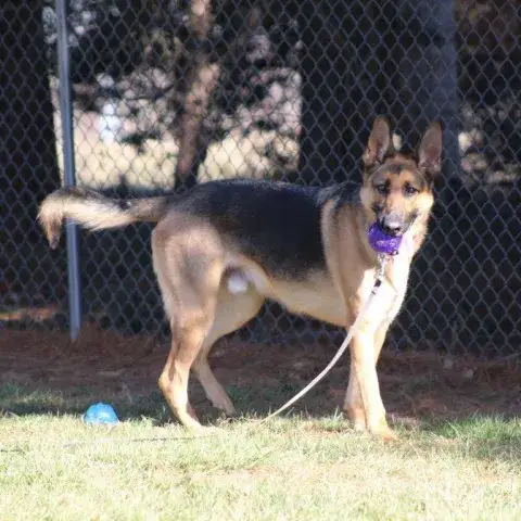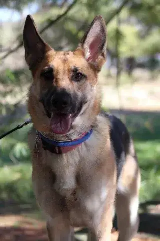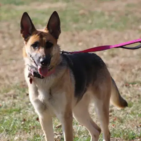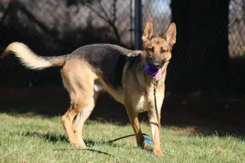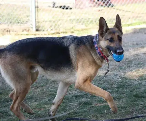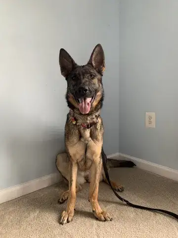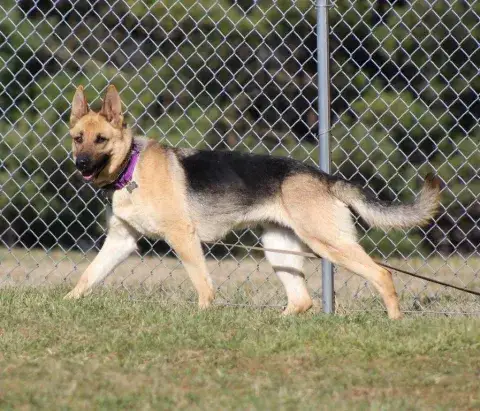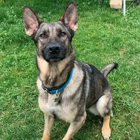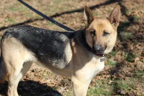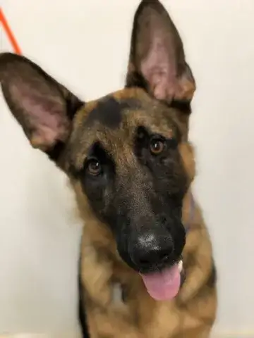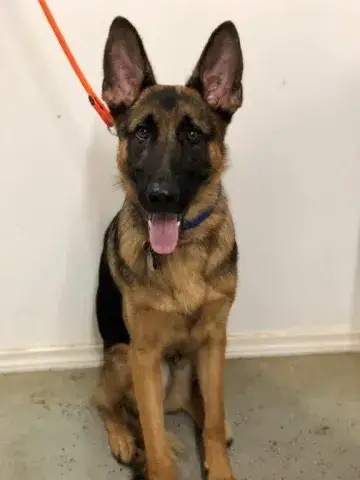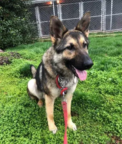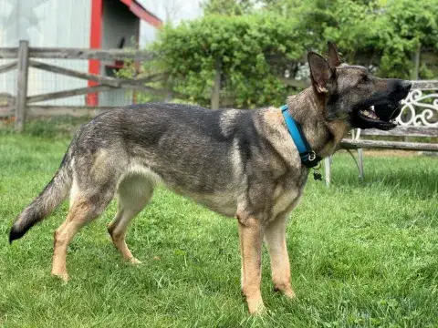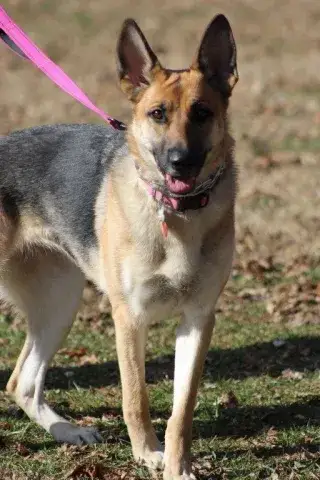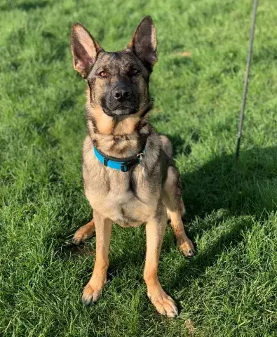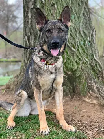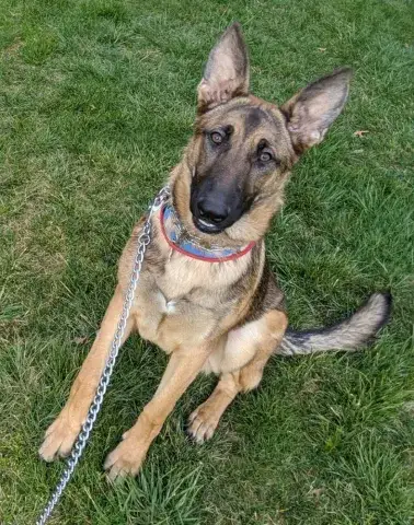 Niner was found as a stray and ended up in a shelter where she was not doing well with the stress of being there. Luckily one of our wonderful foster families agreed to take her into their homes. Niner is an estimated 1 year old German Shepherd. This gorgeous girl is a bit timid and anxious and still needs to build trust and confidence when meeting new people, but warms up very quickly. She is very interested in other dogs and is getting along with the other two at her foster home just great. Niner would benefit from a home where she can work on training and confidence building. We are looking for an adopter that can help channel her energy and help her become the wonderful dog we know she can be!