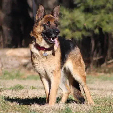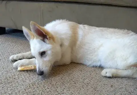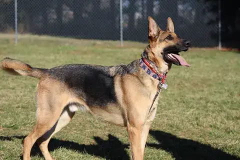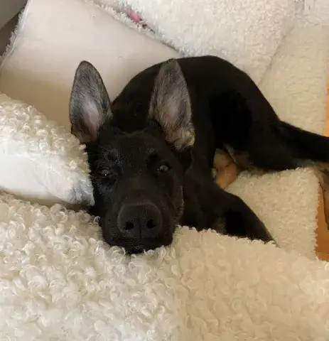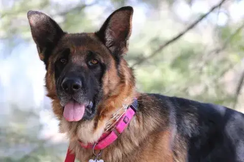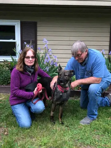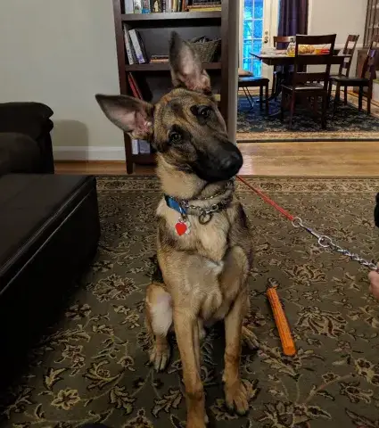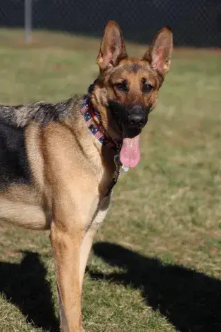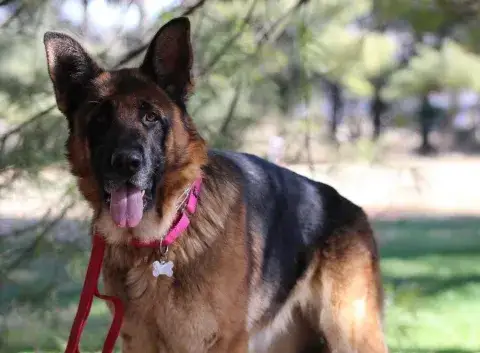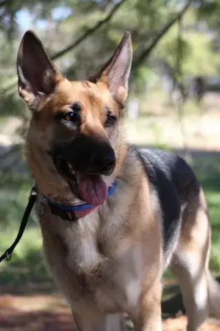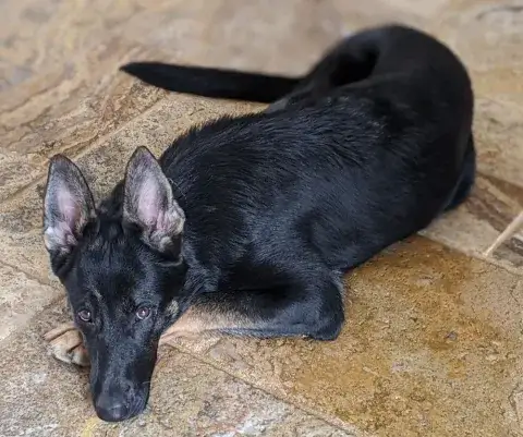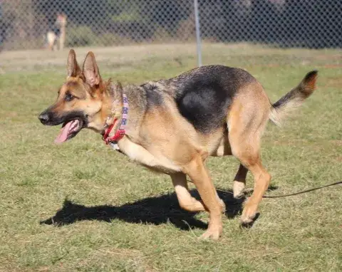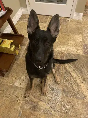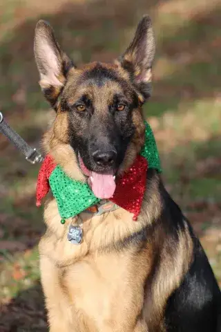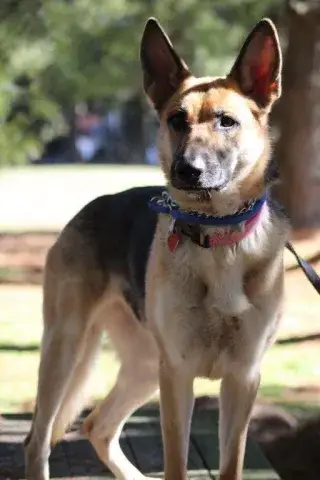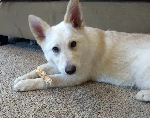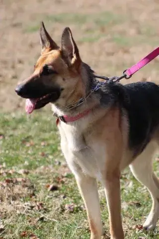 Niner was found as a stray and ended up in a shelter where she was not doing well with the stress of being there. Luckily one of our wonderful foster families agreed to take her into their homes. Niner is an estimated 1 year old German Shepherd. This gorgeous girl is a bit timid and anxious and still needs to build trust and confidence when meeting new people, but warms up very quickly. She is very interested in other dogs and is getting along with the other two at her foster home just great. Niner would benefit from a home where she can work on training and confidence building. We are looking for an adopter that can help channel her energy and help her become the wonderful dog we know she can be!