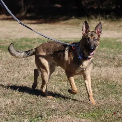 Gunner is a GSD/Belgian Malinois mix who came to us as a surrender as his human dad is ill and not able to care for him. Gunner is a young, high energy pup with lots of drive. He is not going to be a couch potato. He will require daily activity, exercising both the body and mind. Training with an experienced trainer is an absolute must. He will keep you on your toes, so you must be prepared to be one step ahead of him. He is a sponge right now, ready to soak up everything, be it good or bad. He is not well socialized with humans. Gunner has done well with his large breed foster fur-sibilings, but has not yet met any small dogs. You will need to have lots of time and a strong commitment to raising a well balanced, socialized and well mannered boy. Gunner requires someone with prior experience with high drive, high energy working line dogs.