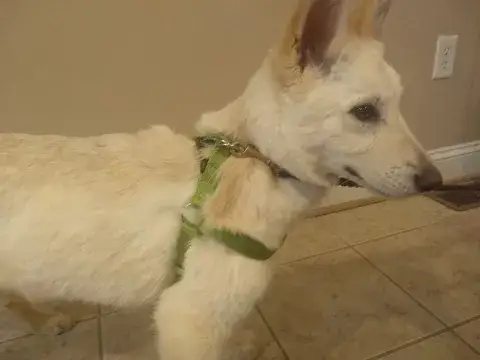 Khali did arrive in our care with a visible change to her elbow which is causing her foot to turn out. Records indicate she underwent elbow surgery in 2018. She will be seen by our vet to check if she healed properly from the surgery.