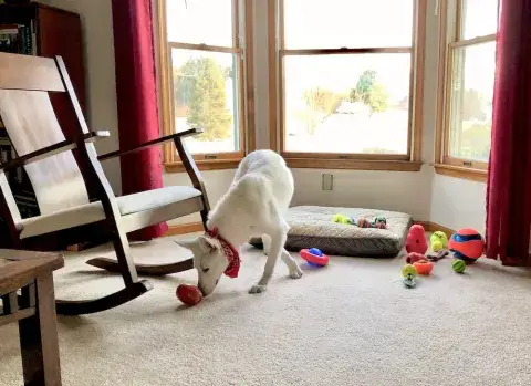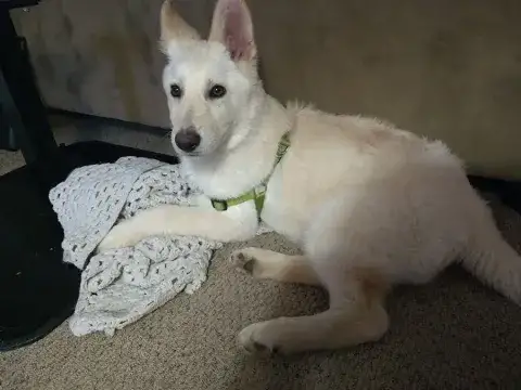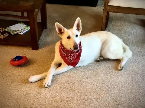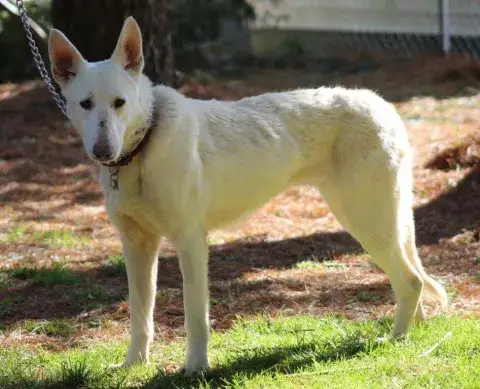 Stark was surrendered to a shelter for barking. He lived his life tethered outside or in the garage. He lived with other large dogs and did well with them. He is described as being playful. He will require training to help him learn leash skills and house manners. His foster has started the process, but it is important that his new family continues with training. Stark is now looking for a home where he will enjoy the comforts of living indoors, a comfy bed and a family that will care for and love him for his lifetime.