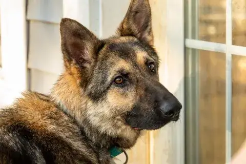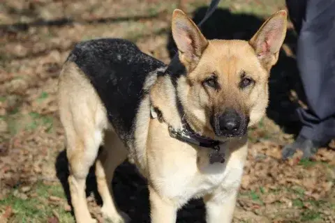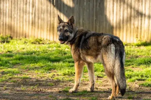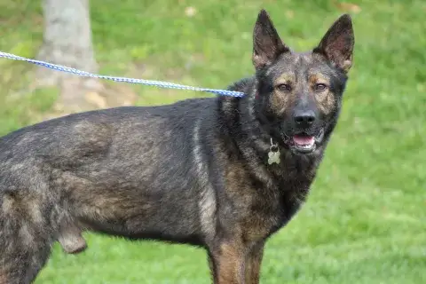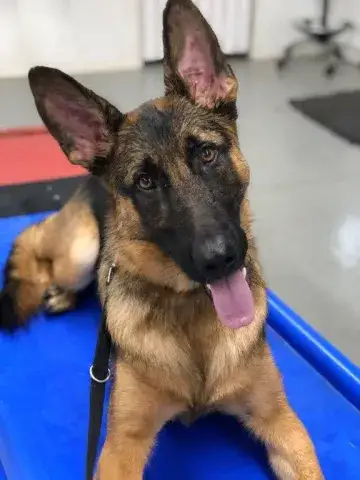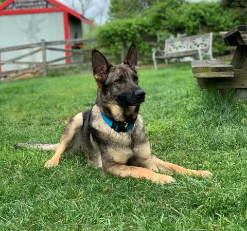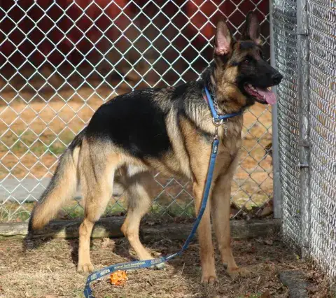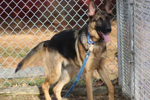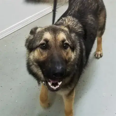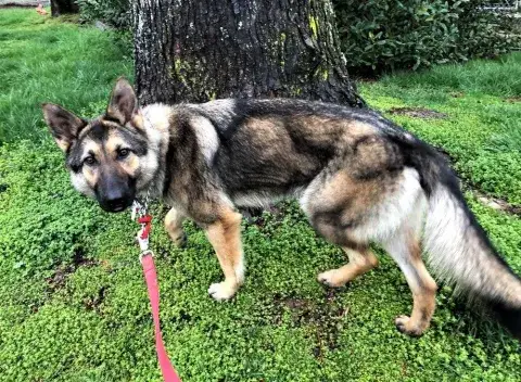 Teak came to us as his prior family did not have the time for a young, energetic GSD. Unfortunately Teak has not been well socialized with people outside of his prior immediate family. For this reason Teak is scared and skittish of new people, new places, sights and sounds. Our volunteers are giving Teak time to settle in and get use to all that is new to him. He will be starting a training program which will help with not only socialization, but also build his confidence. Because of Teak's insecurities, he would learn from and do better in a home with a confident dog to help show him the way forward. He will require a GSD experienced family that will continue with his training, socialization and confidence building. He did live with older children and another dog in his prior home.