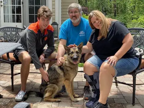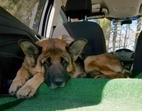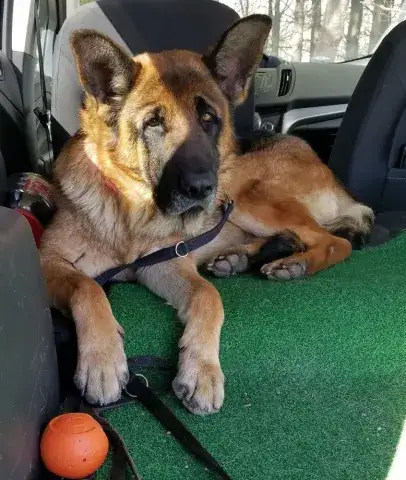 Grace came to us from a shelter we have no history on her. Since arriving in our care she has been friendly, she rides well in the car and did well at her vet visit. She previously lived wth another GSD. She of course needs training, which help her learn good behavior and manners. Grace is heartworm positive, this could have been avoided had she been kept on monthly heartworm preventatives. Grace is in the beginning stages of her heartworm treatment, which of course MAGSR is paying for her entire treatment. She will have to take it slow for the next few months while undergoes treatment, so lots of rest is in order.