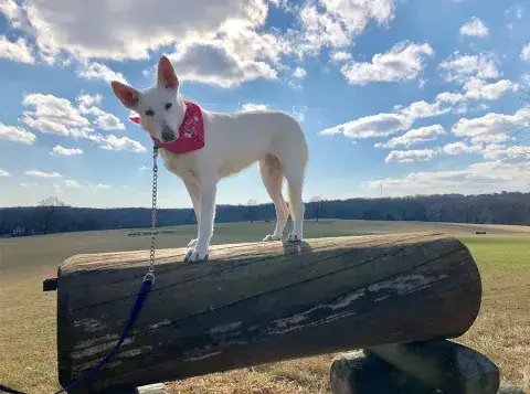 Whiskey was surrendered to us as her family is moving. Her owner has told us Whiskey will bark at other dogs, but after introductions she is fine. She did attend doggy daycare where she interacted with other dogs. Her only experiences with children are when children visited the home and when out on walks etc... We are told she did well with children and adults of all ages. She is young, so she does have the energy of a puppy. Lots of exercise, playtime and training will be needed to help deal with the energy. As the saying goes, a good dog is a tired dog, that means exercising both their bodies and mind. She has a lot to learn as she continues to develop, so training is imperative.