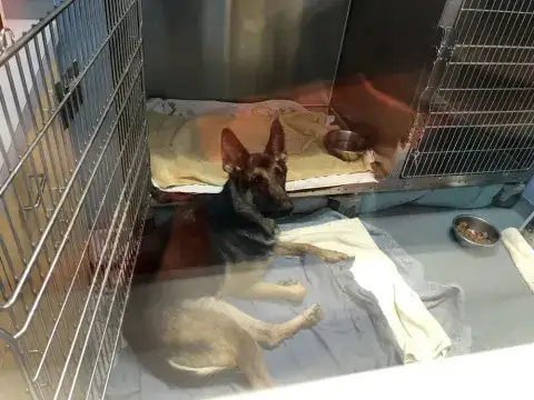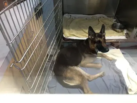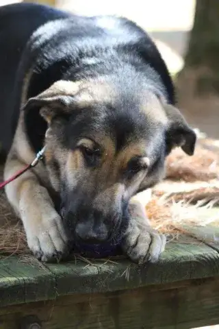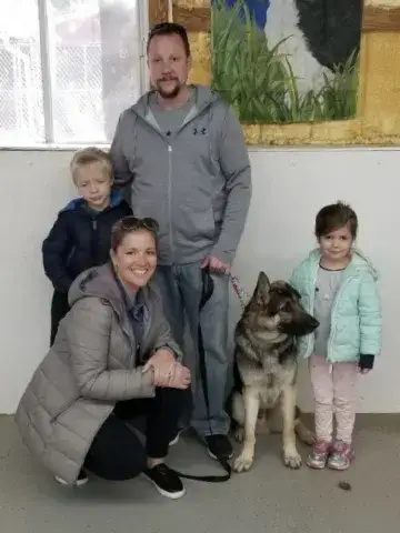Tank was taken to the vet to be euthanized because he helped himself to some livestock. Thankfully the vet would not kill such a young and friendly boy, instead she contacted us. Tank is good with other dogs, but will not do well with livestock, chickens or goats especially. Of course he requires training to teach good K9 manners and to learn to work with his new family. Time is needed by his family to help him settle in, learn the rules and to adjust to a new schedule. Tank has had his stomach tacked, this greatly reduces his chances of bloat. He will require daily exercise, walks, lots of love and attention for the rest of his life. He rides well in the vehicle, he enjoys looking out the window and getting a few head rubs. Please be certain you have what it takes for an energetic GSD and are committed for his lifetime.