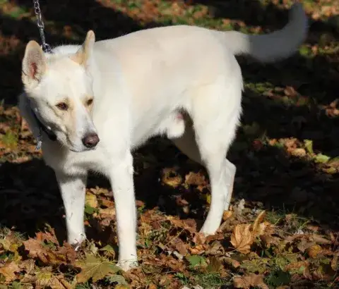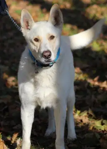 Geist is a male German Shepherd mix with a beautiful white coat. He is new to the rescue, but a super sweet guy. Geist is lovely with the female dogs, but not so great with male dogs. He's simply a nice fella that prefers the ladies to himself. Geist is good with humans and loving. Like all of our dogs, Geist will benefit from standard obedience work to help him be the best gentleman he can be.
