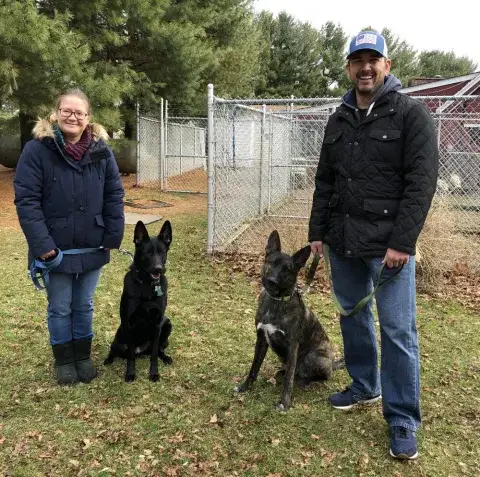 Liam, along with his siblings Luc and Lieve lived outside without proper care or an adequate amount of food for growing puppies. Thankfully they were brought to our attention and brought into our care. They were underweight, but with proper nutrition they have gained weight. The pups are a mix of Dutch Shepherd (dad) and Belgian Malinois (mom). Both of these breeds are very high energy dogs that require a lot of exercise of both their bodies and minds, along with obedience training, ongoing socialization and direction. It is imperative that you have the time, everyday, to work with them on their training and can meet their exercise needs. We will only consider adopters that have prior experience with working line dogs. Please remember that puppies are a lot of work and require a lot of attention from their family - puppies are a ten to twelve year commitment.