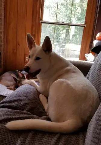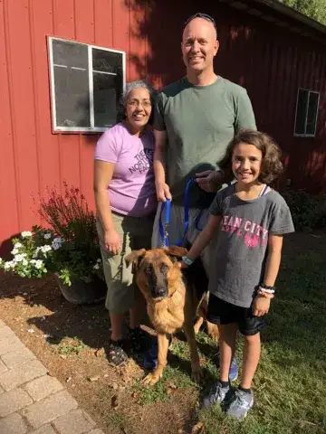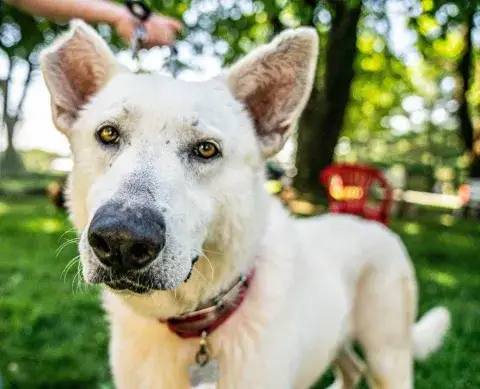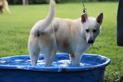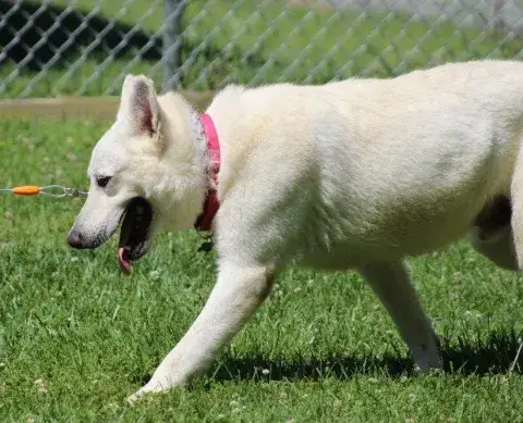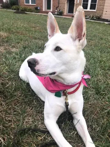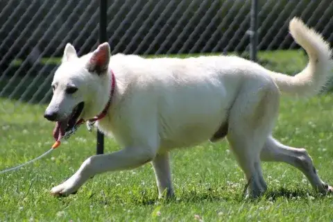 Leia was surrendered to a shelter as her military dad was deployed overseas. She is a large very friendly girl. Leia enjoys her humans and gets along well with other dogs. She is overweight so a diet and exercise are in order. Leia has shown our volunteers that she's up for a game of fetch with a tennis ball and running around and playing with her human.