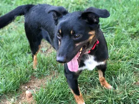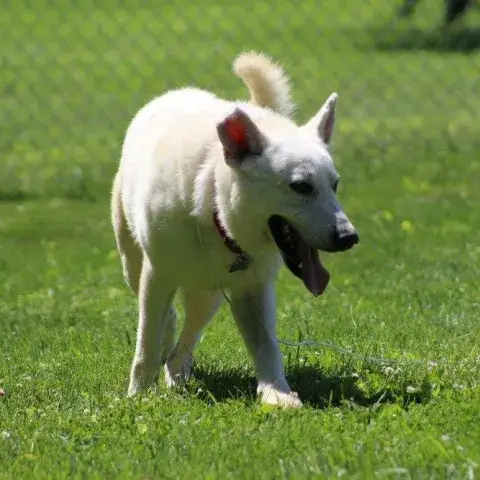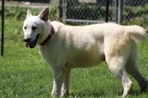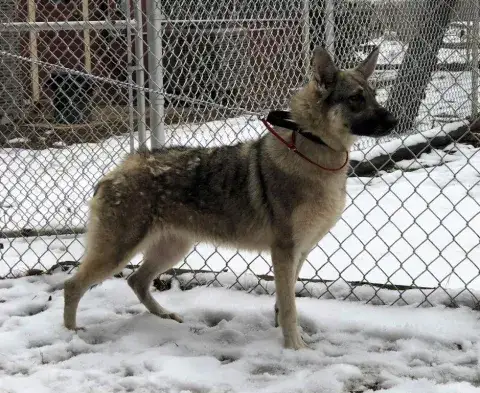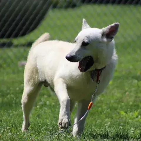 Lincoln came to us from a home where he lived as an only dog and with a single man. He did not have socialization outside of the home, so we do not know how he is with children, cats or other dogs. While in our care he has been in the area of other dogs with no reaction, but he has not been formally introduced to other dogs. He has been friendly with our volunteers and easy to handle with an experienced handler. Lincoln can become protective of his person, this will need to be addressed with proper training and handling. Lincoln enjoys a game of fetch and chasing off squirrels from his yard. We feel it best that Lincoln be adopted by a family that has experience with the breed and their protective trait.